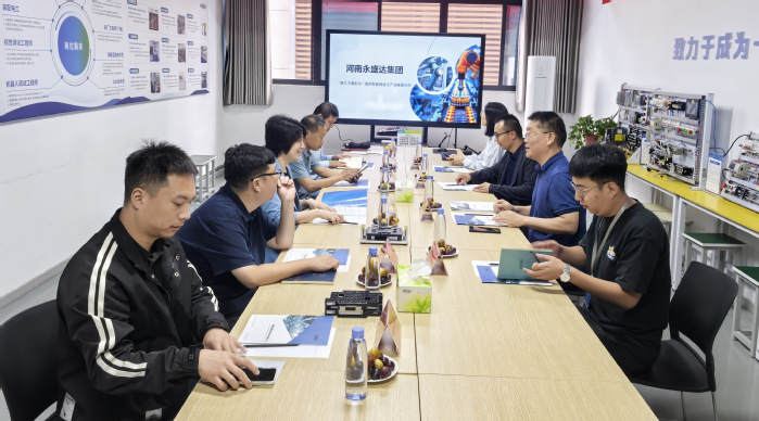 随后,双方在公司会议室举行交流座谈。会上,河南永盛达自动化科技有限公司总经理康杰朋详细介绍了企业的发展历程、业务范围、技术优势及未来发展规划,并表达了对高技能自动化专业人才的迫切需求。刘珊珊简要介绍了学校基本情况,并重点阐述了学校在产教融合、校企合作人才培养方面的理念与举措,希望双方进一步发挥各自优势,创新人才培养模式,实现人才培养与产业需求的精准对接,共同为经济社会高质量发展贡献力量。双方围绕校企协同人才培养,就未来合作方向与实施路径深入交换意见,达成多项共识。